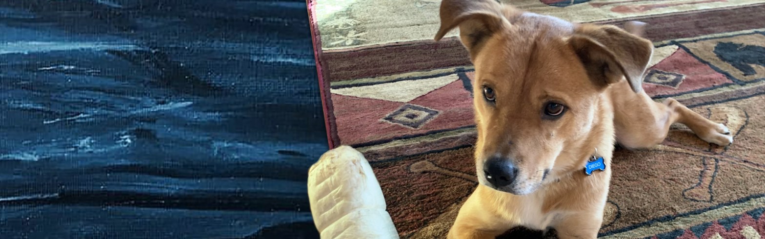 Halloween was nearly here and I had plans to celebrate my friend Mari’s birthday at our family cabin. My parents were willing to let me bring Diego and keep him inside since it seemed like there wasn’t a great alternative option for us at the moment. I spoke with Adam, the trainer, and asked him how to handle spending time with friends over the weekend, since my other option was canceling—which would only prove that having this dog was going to make me sacrifice a lot more than I planned on when I got him. We were going to try this. We had been alone long enough in this pandemic and were going to see some friends! His advice as I remember it was to have everyone ignore Diego, they don’t need to pet him or give him a lot of eye contact, just let him be.