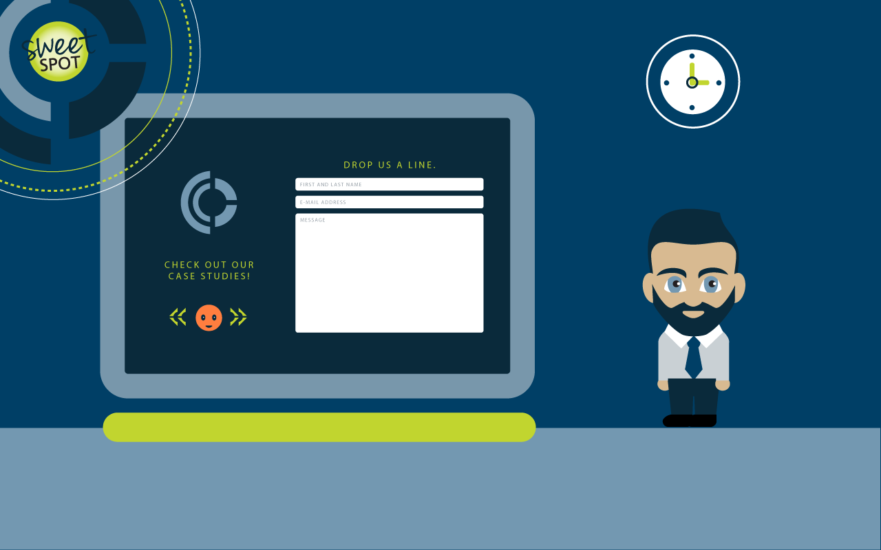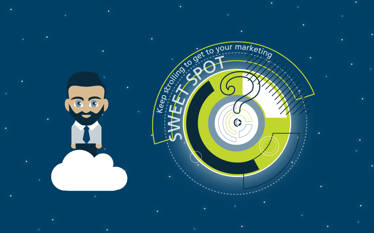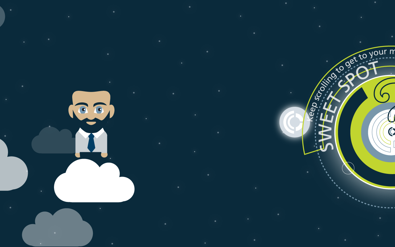 The illustrations in the parallax concept below navigate prospective clients through Caliber’s process to find their marketing “sweet spot.”