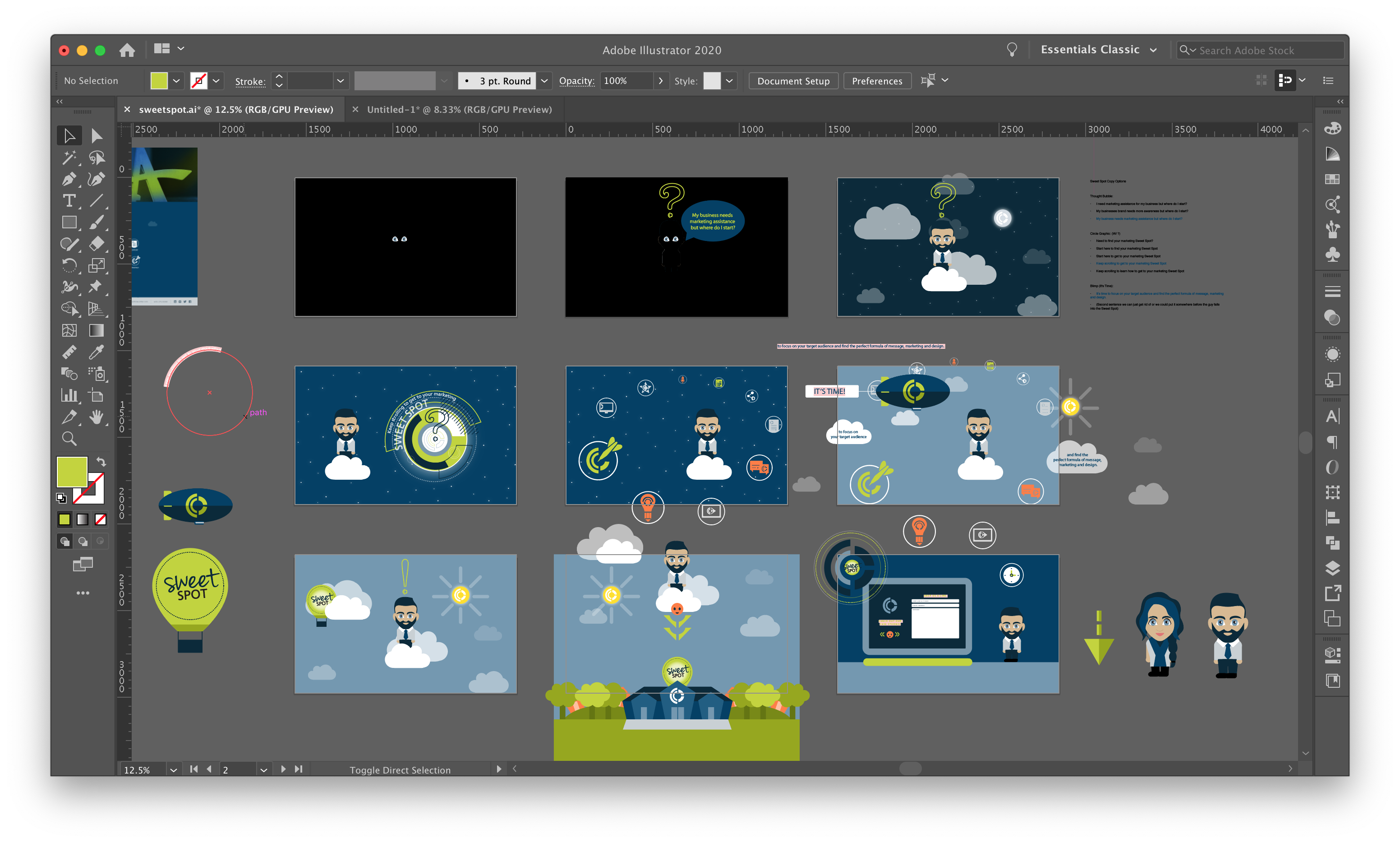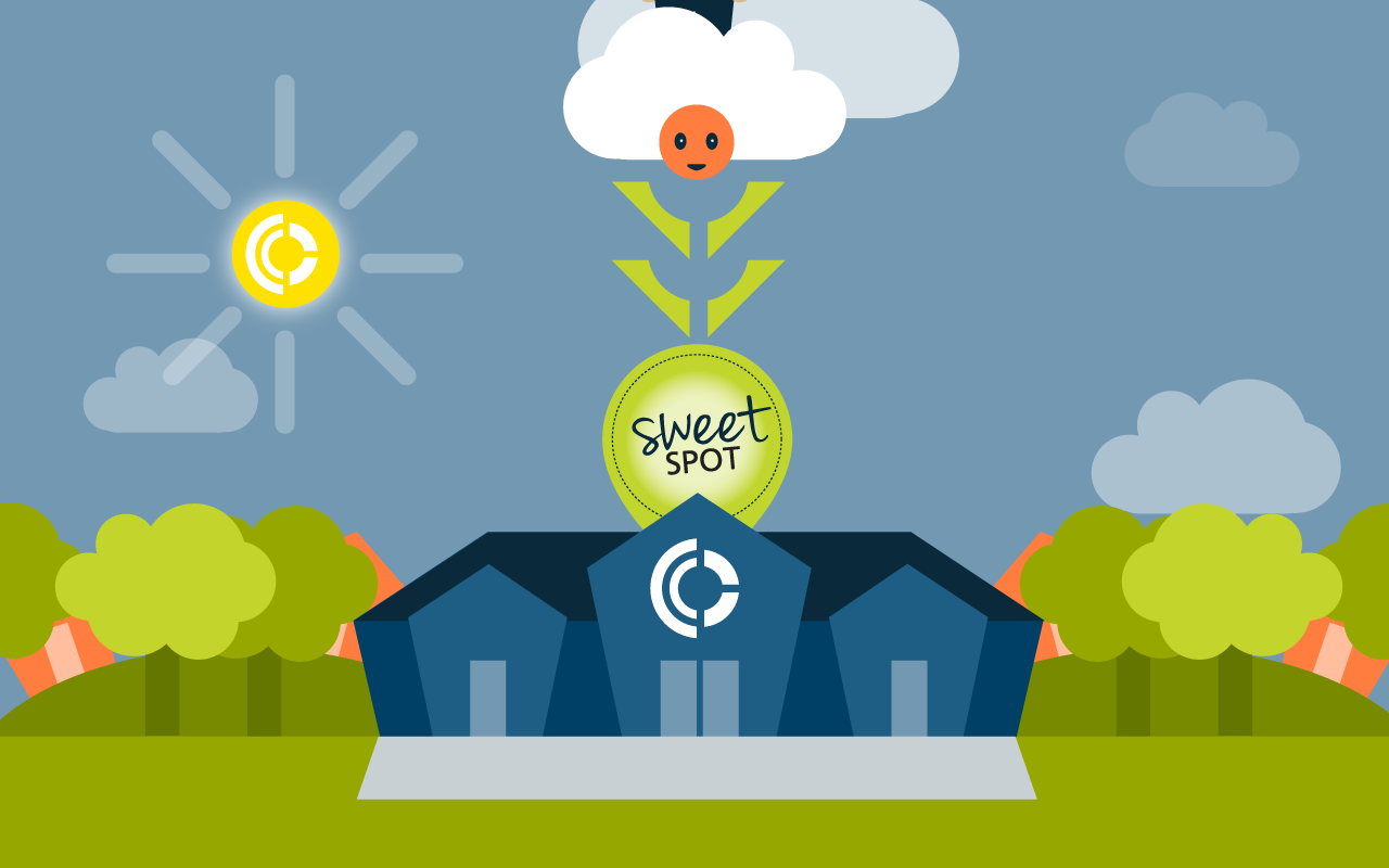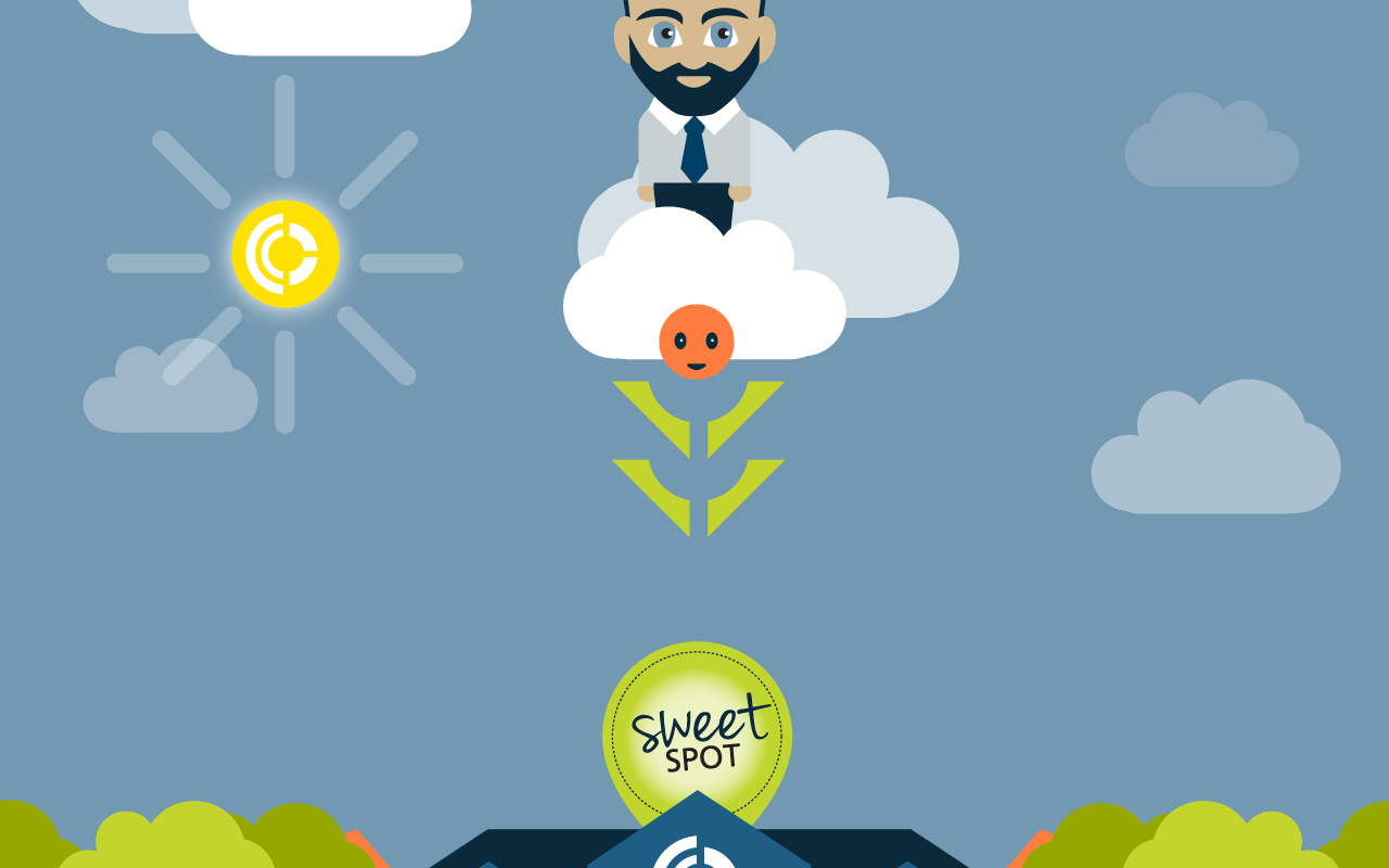 The illustrations in the parallax concept below navigate prospective clients through Caliber’s process to find their marketing “sweet spot.”