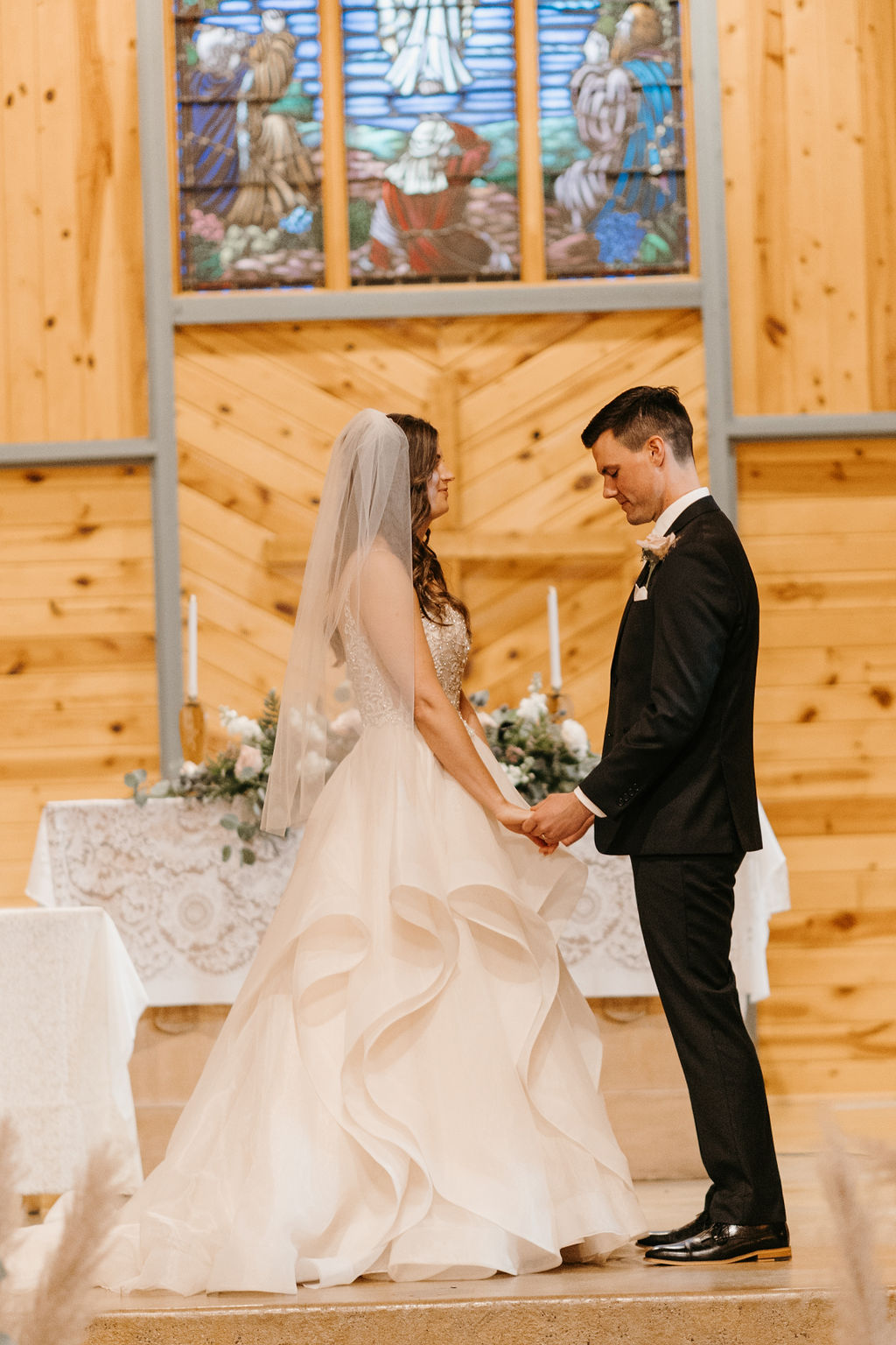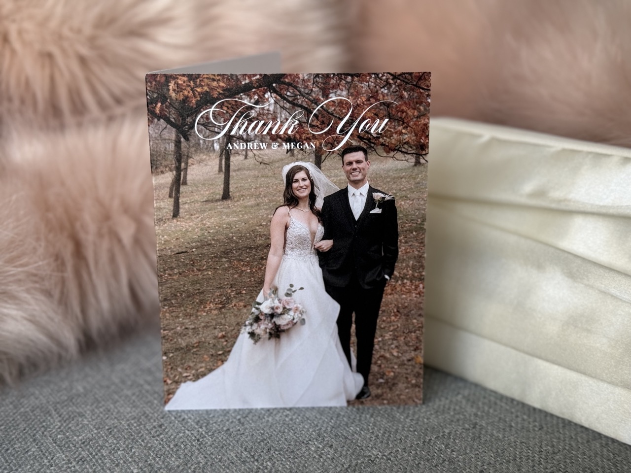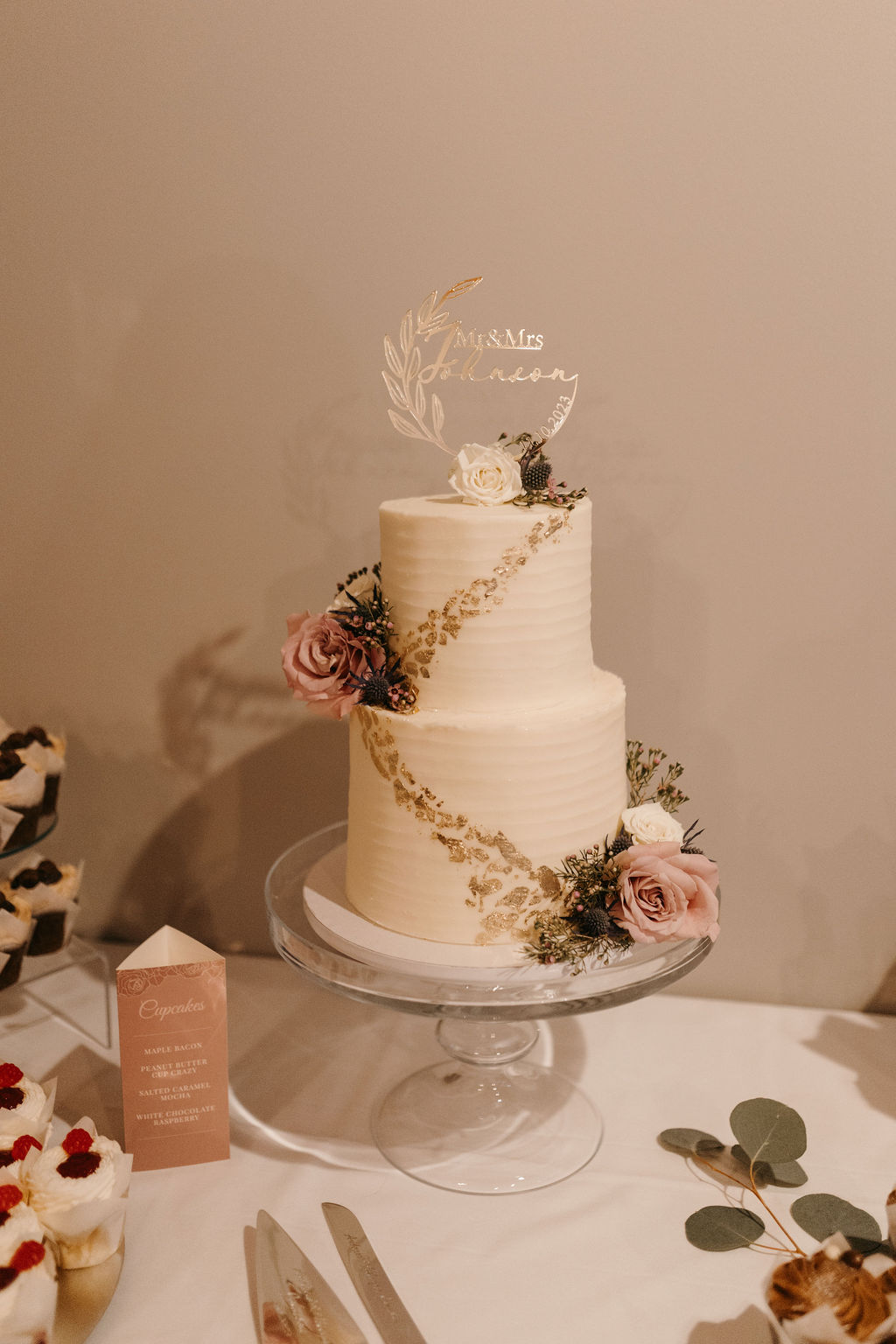 As our wedding day approached, it was time to design the invitations and collateral which included digital save the dates, web graphics, programs, place cards, and signage. I wanted the invitations to reflect the feel of the wedding dress and decor, elegant glamour with accents of desert rose, champagne, and metallics. A script paired with hand-drawn floral illustrations printed on linen paper was a perfect touch as guests opened their invitation with details of the evening timeline, an RSVP card, and an illustrated map with hotel locations. Seeing it all come together as table tents and place cards sprinkled the tables alongside flowers and candles was a special moment.